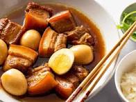 Thịt kho tàu là món ăn quen thuộc ngày Tết miền Nam, gồm thịt heo và trứng được kho mềm trong nước dừa, có vị mặn ngọt đậm đà, tượng trưng cho sự đủ đầy và ấm no 🍖🥚🥥✨.